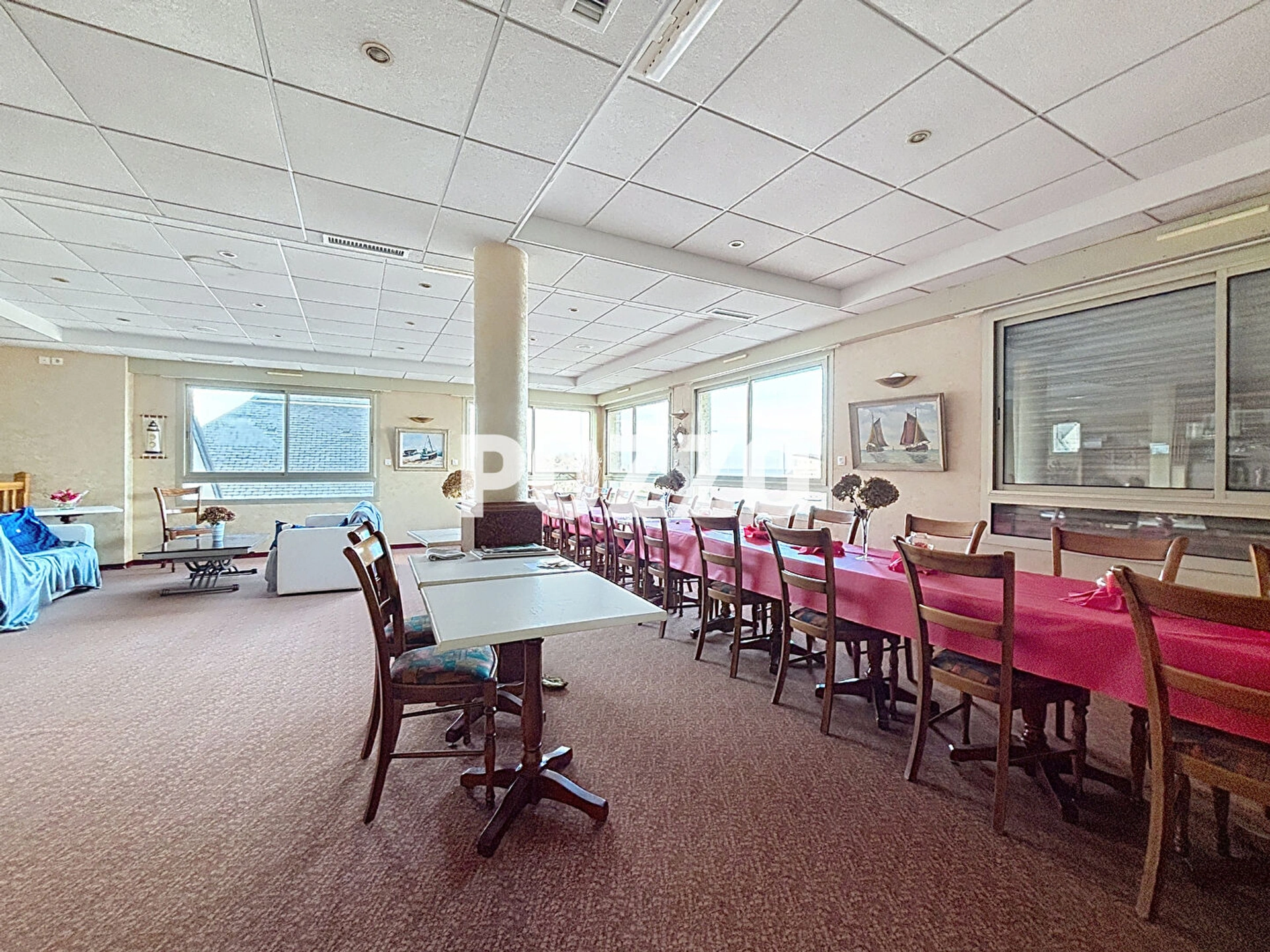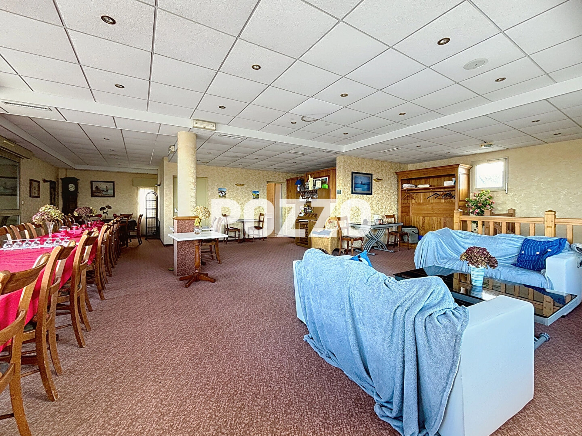 En rez de chaussée (pouvant être considéré comme habitation ou commerce) : Une entrée, deux salles d'eau, un wc, un bureau, une lingerie, une salle de restaurant, une cuisine professionnelle, une salle de plonge, un wc handicapés, un wc, un urinoir