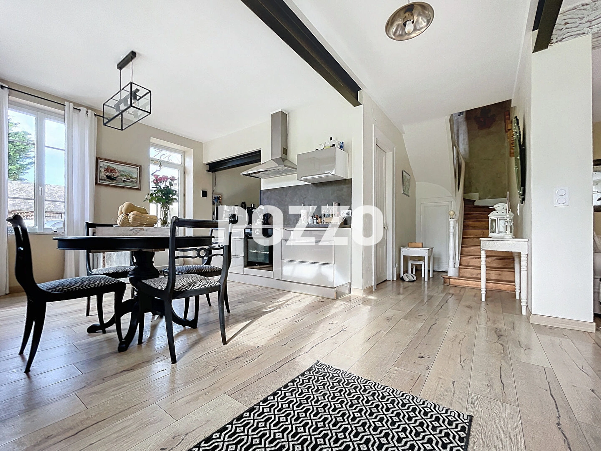 - Au rez-de-chaussée : Un séjour spacieux et lumineux, salle à manger, cuisine américaine aménagée et équipée, WC .