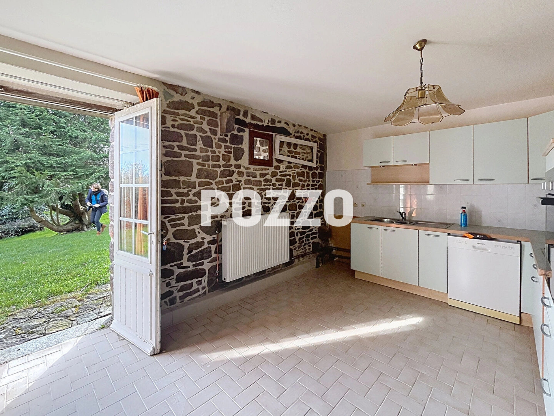 Au calme, Longère en pierre d'environ 200 m² en bon état, 4km de l Abbaye de la Lucerne, COMPRENANT :Rez de jardin : cuisine, séjour-salon cheminée, WC, bureau, salle de bains, 1 chambre. Rez de chaussée : cuisine aménagée et équipée, séjour-salon cheminée, salle de bains, WC, garage-buanderie. Arbres fruitiers (4 pommiers, 2 pruniers, 1 poirier, 2 cerisiers). étage : Mezzanine, 3 chambres, couloir-placard, salle d'eau et wc. 3 garages. Terrain 2680 m². Arbres fruitiers. (5.24 % honoraires TTC à la charge de l'acquéreur.)